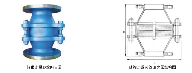 儲罐防爆波紋阻火器是安裝在儲罐上用來阻止易燃氣體、液體火焰蔓延和防止回火而引起爆炸的安全裝置。儲罐防爆波紋阻火器通常安裝在輸送或排放易燃易爆氣體的管線上。如火炬、加熱燃燒系統、石油氣體回收系統或其它易燃氣體系統。