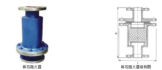礫石阻火器(又名防火器),礫石阻火器的作用是防止外部火焰竄入存有易燃易爆氣體的設備、管道內或阻止火焰在設備、管道間蔓延。礫石阻火器是用來阻止氫氣火焰向外蔓延的安全裝置。