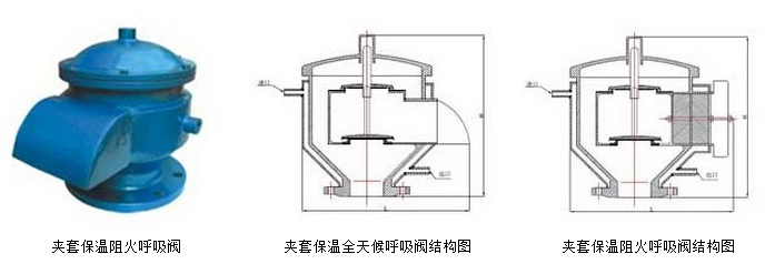 夾套保溫呼吸閥用于安裝原油、汽油、煤油、輕柴油、芳烴等儲(chǔ)罐上的主要安全設(shè)備,夾套保溫呼吸閥是起蒸發(fā)損耗與保護(hù)儲(chǔ)罐在受超壓或真空時(shí)免遭破壞的作用。