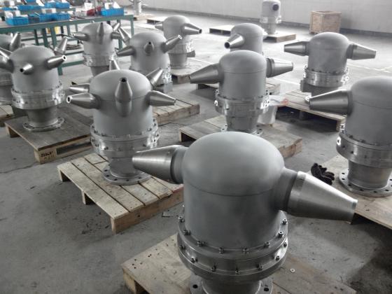 隨位調合旋轉噴頭制造尺寸根據油罐規格、油品種類、調合泵流量等參數進行設計,確定結構長度、角度。
