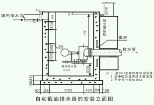 北方寒冷地區季節溫差大,凍土層深。為防止沉砂井和排水管冬季結冰,保證罐區自動截油排水器的使用效果,安裝時將自動截油排水器的排水管平行埋在凍土層線以下,從而達到當地表結冰時而沉砂井和排水管不結冰的目的,確保自動截油排水器不受季節溫差的影響,常年有水自動排出,有油自動截留,無水自動關閉。