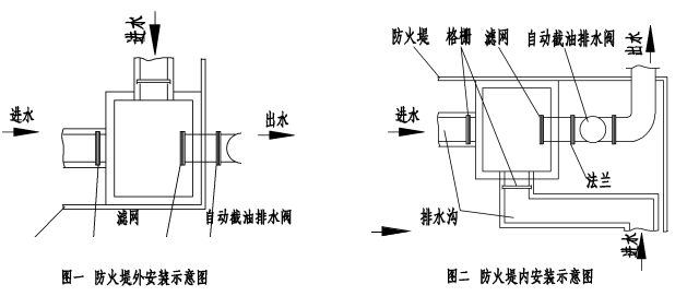 該產品排水管道采用法蘭連接,埋地安裝,克安裝在防火堤內,也可安裝在防火堤外:
